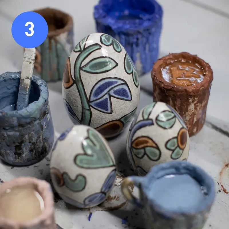• Aplicamos pigmentos e esmaltes naturais, usando técnicas variadas para decorar e personalizar cada peça.