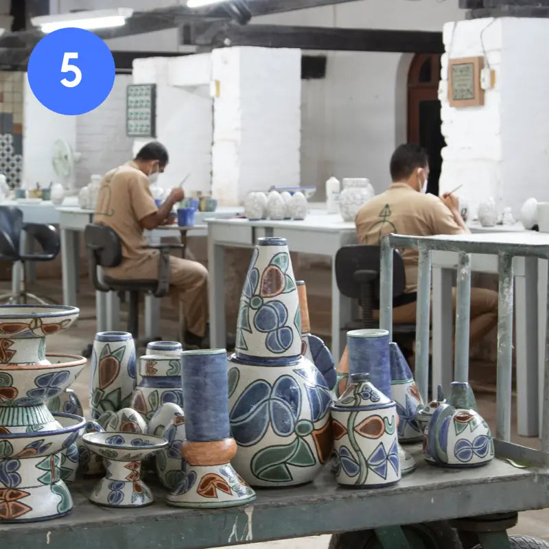 • As peças passam por 2 queimas: a primeira para endurecer a argila e a segunda para conferir a duração e resistência do esmalte.